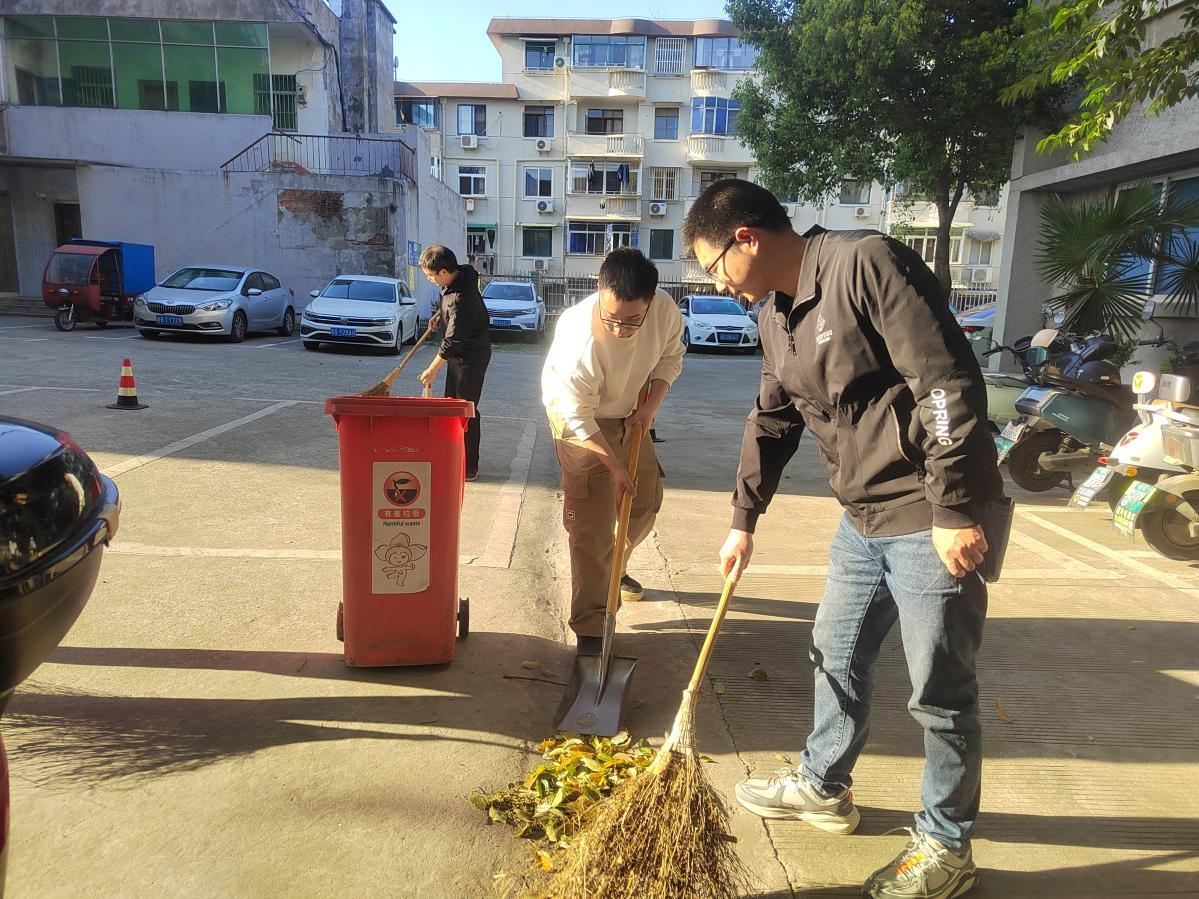 隨著活動(dòng)正式開始,各小組在區(qū)域負(fù)責(zé)人的帶領(lǐng)下迅速投入到緊張而有序的工作中。宣傳欄清潔組的志愿者們以細(xì)致入微的態(tài)度擦拭著每一塊宣傳板,期間還相互交流清潔技巧,力求達(dá)到最佳清潔效果。小組成員各司其職,有能力者主動(dòng)承擔(dān)起高處清潔任務(wù),大家協(xié)同合作,高效有序,去除了積塵,讓宣傳欄煥然一新,成為傳播正能量的亮麗風(fēng)景線。電動(dòng)停車區(qū)域的志愿者們,則不畏落葉繁多,手持掃帚,耐心清掃。盡管遭遇大風(fēng)挑戰(zhàn),剛掃好的落葉隨即被吹散,但志愿者們并未退縮,而是迅速調(diào)整策略,采取兩人一組的方式,一人負(fù)責(zé)清掃,另一人負(fù)責(zé)用鐵鍬收集落葉并倒入垃圾桶。在大家的共同努力下,車輛停放區(qū)最終恢復(fù)了整潔有序,為員工提供了更加便捷、安全的停車環(huán)境。活動(dòng)過程中,黨員和團(tuán)員們充分發(fā)揮了不怕臟、不怕累的精神風(fēng)貌,整個(gè)辦公區(qū)域因他們的辛勤付出而煥發(fā)出全新的生機(jī)與活力。